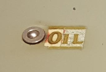 Oil Inlet- positioned on the roof at the rear of the cabin. The inlet has a spring loaded steel ball which closes the inlet until an oil can nozzle is inserted to add oil to the motor below the deck. The oil dropped into a funnel which is attached with a tube to the motor.