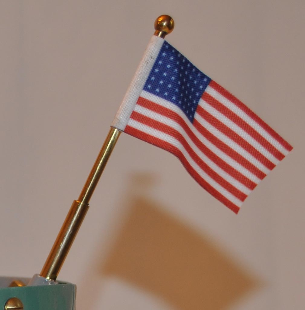 Tiller and Stay- the tiller, made of brass, is stamped to form a “V” and rests on the tiller stay which is a threaded bolt supported with brackets that are tack welded to the deck. The threaded bold is held in place secured on both sides with pinned nickel plated hexagon end caps. These end caps are the same as the wheel caps used on the BUDDY “L” bus (catalogue number 208) and the Water Tower Fire Truck (catalogue number 205D), the tiller extends through a tube in the hull and attaches to the rudder with a single pin at its base.